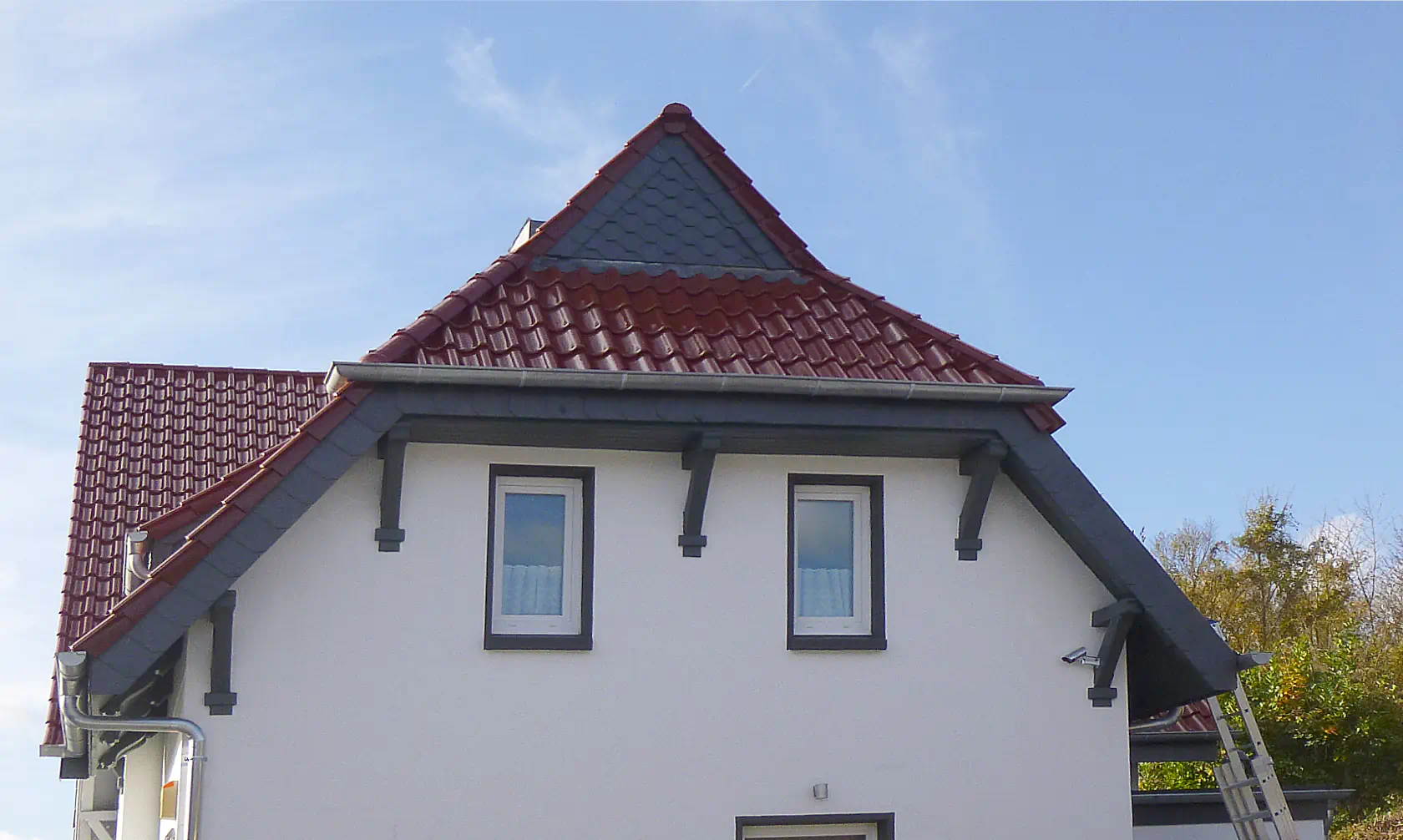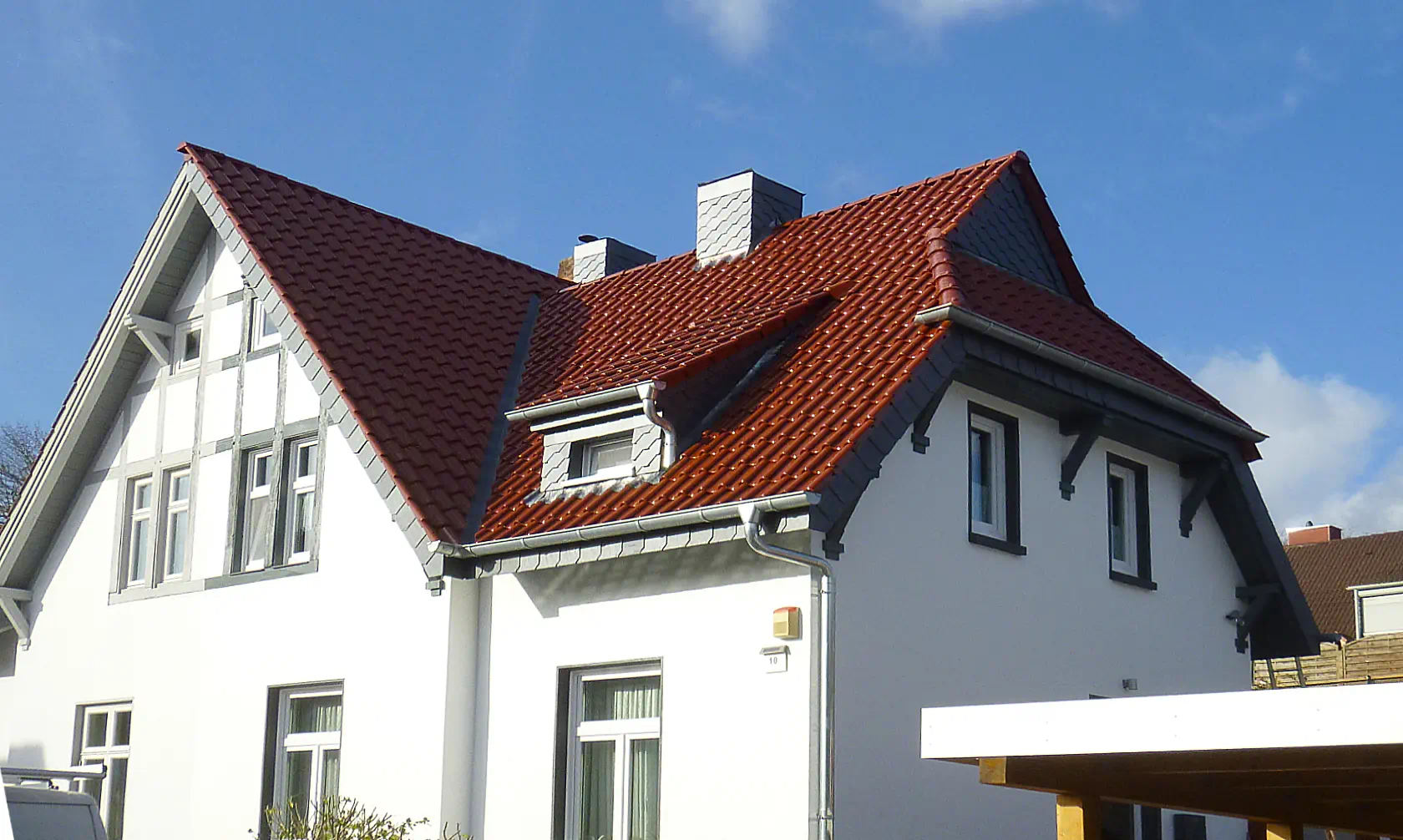 Das Steildach ist die wohl klassischste Art des Regenschutzes. Es gibt jedoch die unterschiedlichsten Materialien zur Herstellung einer solchen Dacheindeckung und verschiedene zugelassene Verlegetechniken. Wir beraten gern bei der Entscheidung zwischen Ton, Beton, Schiefer, Faserzement, Bitumen, Kunststoff- und Elastomerbahnen, Flüssigkunststoffen Holz, Reet oder Metallen.