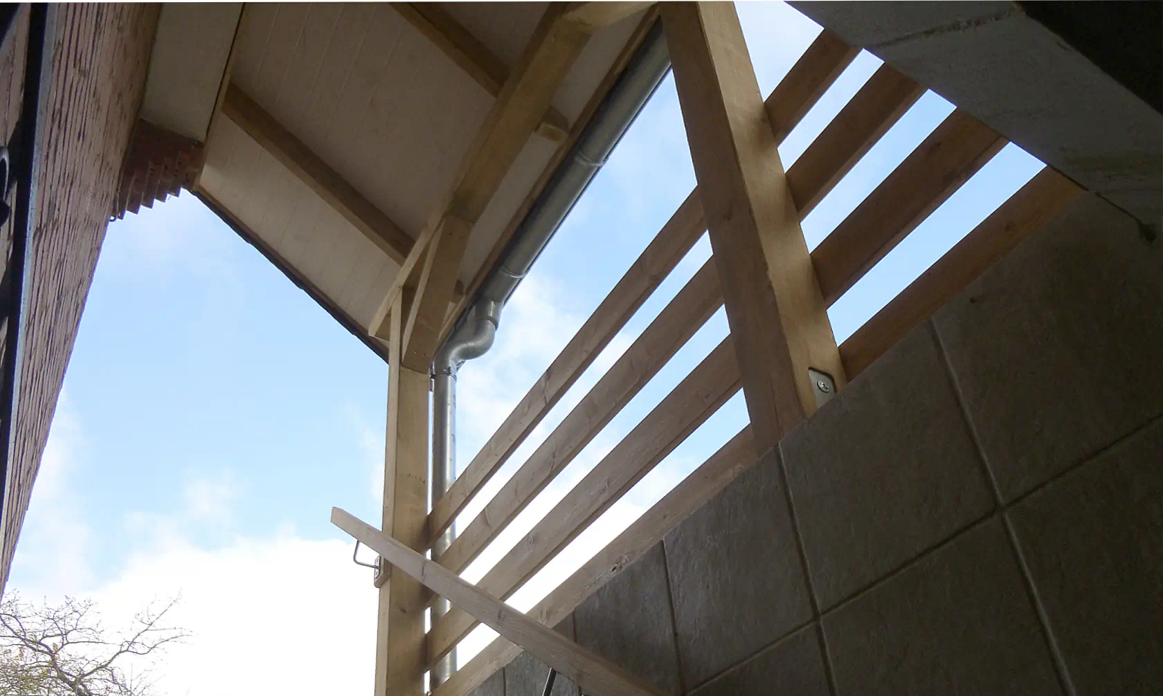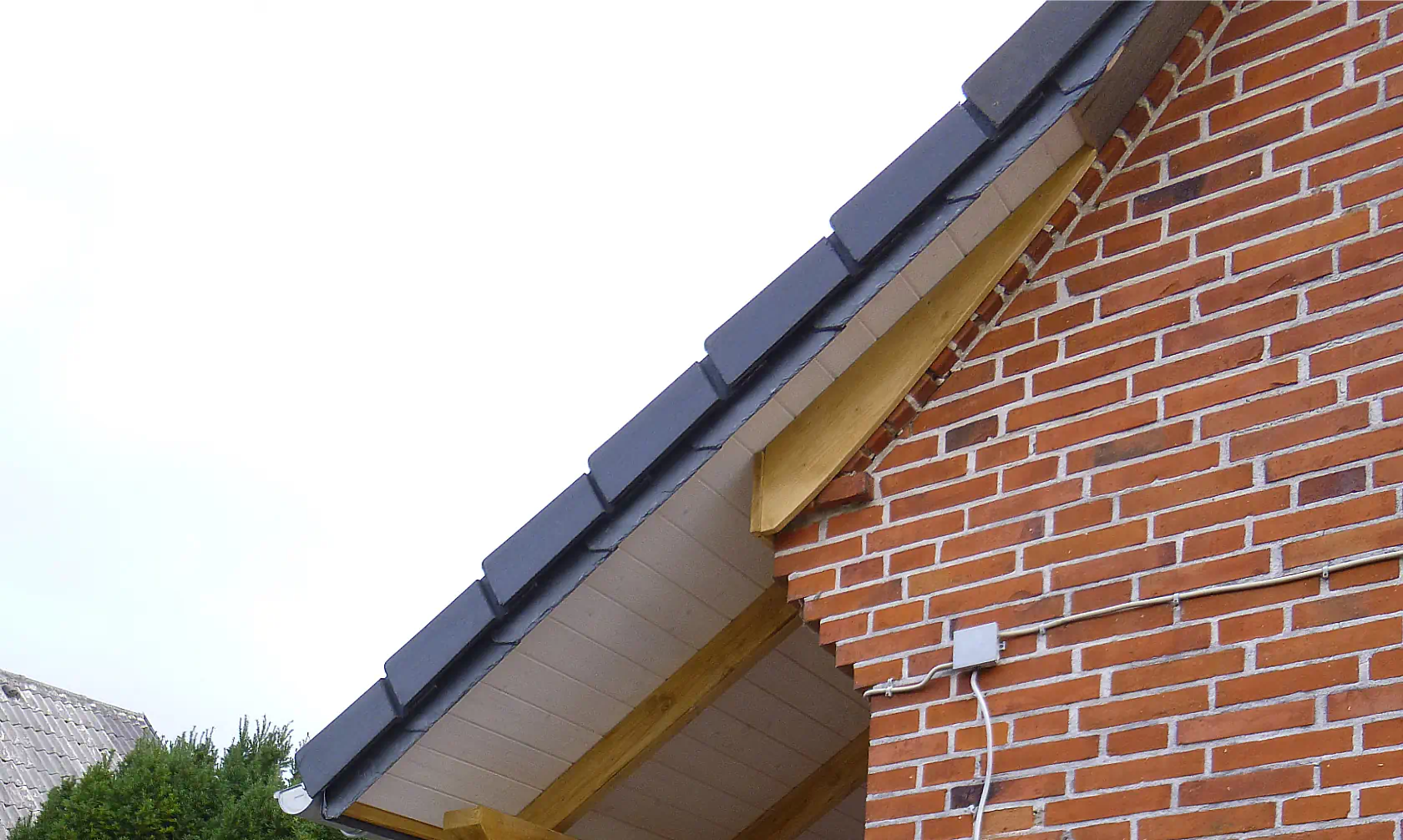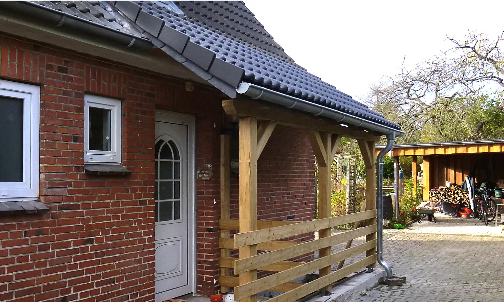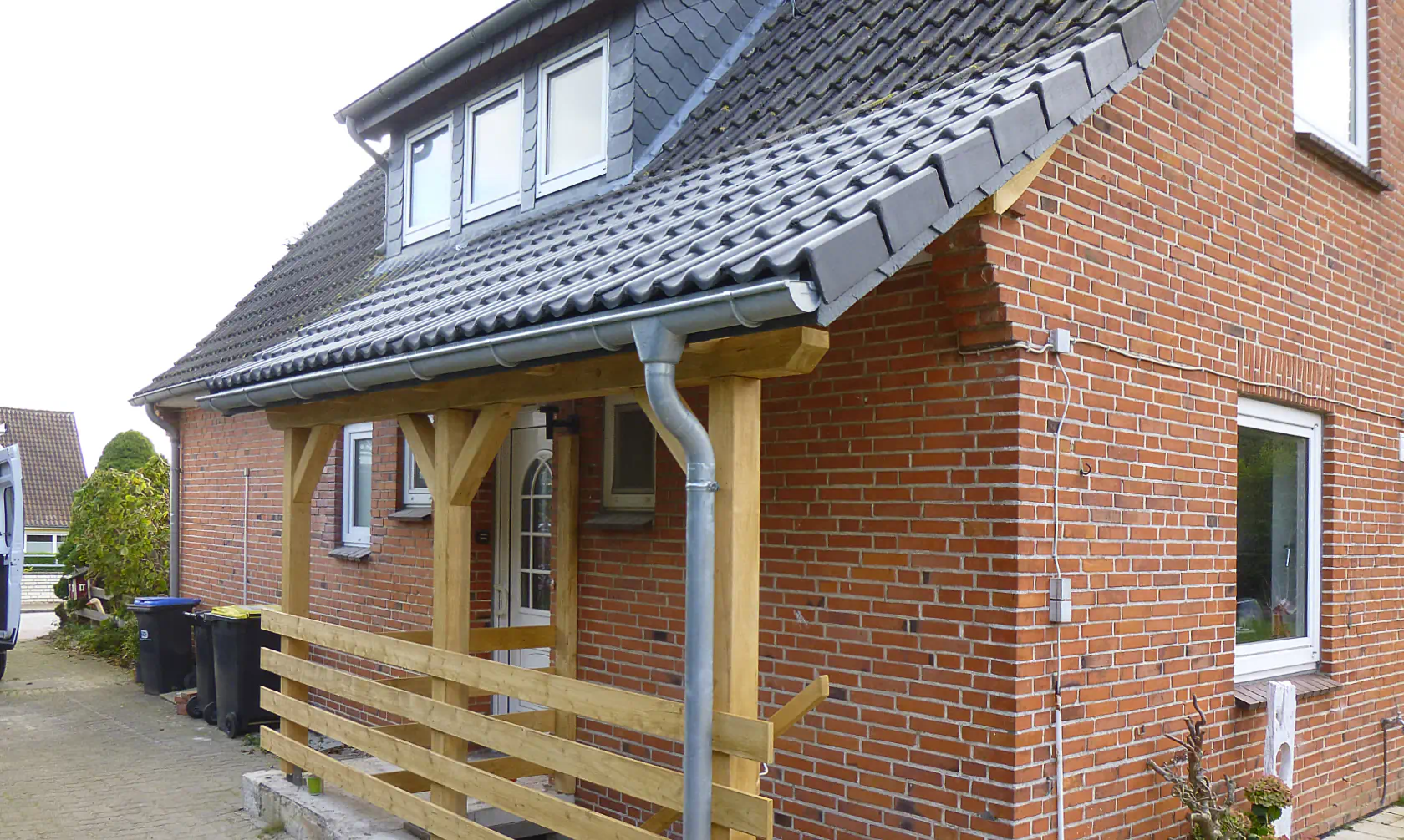 Vordächer können freistehend sein und modern wirken oder wie hier einfach an den Bestand angepasst und aus der Dachfläche abgeschleppt werden.